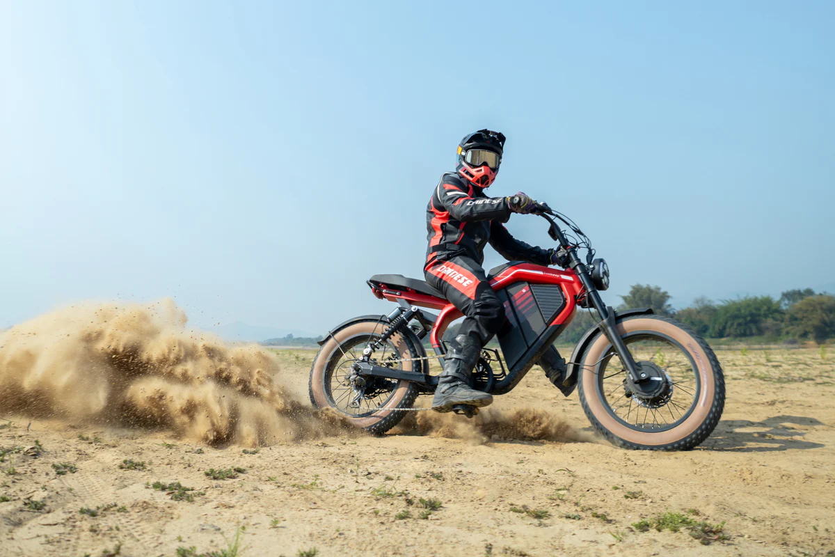 The Luckeep M5 Ultra is built for extreme terrain with dual 1000W motors, delivering 2000W peak power and 240N.m torque. Its full suspension system—hydraulic suspension alloy fork and spring rear suspension—ensures a smooth ride over rough trails, while 20” x 4” fat tires provide excellent traction and stability.