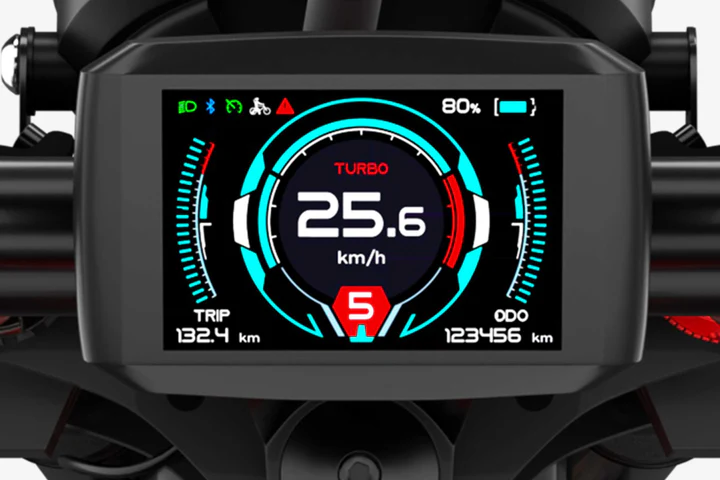 A high-visibility TFT screen offers real-time riding data, including speed, battery level, and power mode. NFC unlock adds security and quick access convenience.